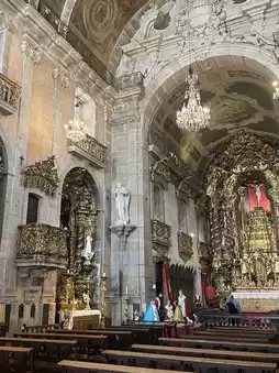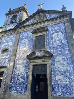Walking along the bustling shopping street of Rua de Santa Catarina in Porto, you might come across a small church quietly revealing itself amidst the crowd. However, its appearance is anything but small. The entire exterior is covered with striking blue azulejo tiles, making this church stand out prominently in the city's landscape.