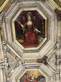 Notably, the cloister (monastic garden) adjacent to the cathedral is lined with traditional Portuguese azulejos (blue tiles) that vividly depict scenes from the Bible.
