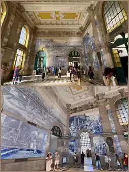 The most famous feature is the azulejos in the station hall, which feature approximately 20,000 blue and white tiles depicting scenes from Portuguese history and folklore.