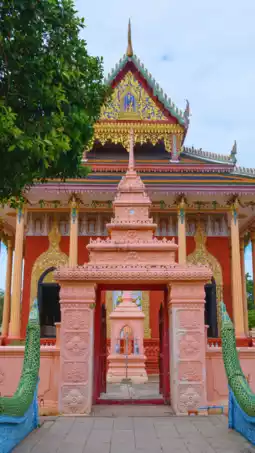 🛕 Wat Chaeng, another important temple with a tranquil atmosphere, is perfect for making merit and relaxing. It stands out for its pristine white ubosot (ordination hall) and large trees providing cool shade.