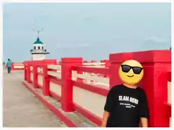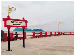 📌 The bridge stands out with its red bridge, a long path leading down to the sea. 📸 The atmosphere in the evening, when the sun is setting and the wind is calm, is very suitable for walking, filled with locals and tourists coming to admire the beauty of the Prachuap sea.