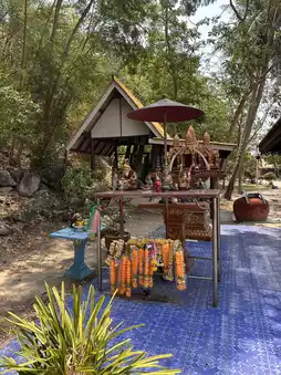 Reclining Buddha Cave nearby Wat Ao Noi is especially interesting and different because it’s right over the water, so after the climb, I saw not only the cave was beautiful statues, but also enjoy the stunning view over the bay.