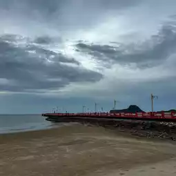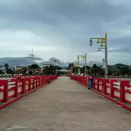 📍Saranwithi Bridge is a red bridge located in Mueang Prachuap Khiri Khan District. The bridge is long and extends into the middle of the sea. It is made entirely of cement. There is an area for walking and relaxing.
