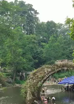Oh, and you must visit the Sino-French Bridge. This ancient stone bridge spans the canyon and remains strong despite the passage of time. Standing on the bridge, you can feel the historical charm as the mountain breeze brushes against your face (Picture 2: The Sino-French Bridge, weathered yet unique, with a gentle stream flowing beneath it).