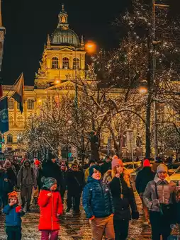 After a warming breakfast, I crossed the frost-covered Charles Bridge, watching the Vltava River drift silently under the pale winter sky. I spent the late morning exploring Prague Castle – dusted with snow, it looked absolutely majestic. The views from the top were incredible, especially with the rooftops blanketed in white. Inside St. Vitus Cathedral, the stained glass glowed beautifully in the winter light. In the evening, I took a winter river cruise – the boat was heated and offered hot drinks while I watched Prague’s landmarks shimmer under the night sky.