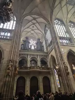 Absolutely breathtaking! It took over 500 years to complete. The sheer number of stained glass windows is overwhelming. The stained glass designed by Mucha is particularly famous. The grand pipe organ and the intricate decorations are also stunning. Since we visited on a cloudy morning, the slightly dim lighting added to the solemn and majestic atmosphere. Wow, I’m so glad we came here!