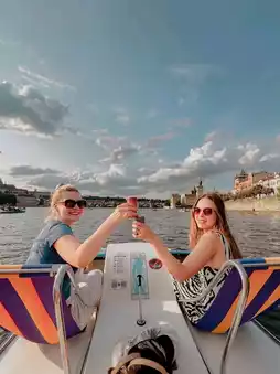 🏞Perfect time to go and chill out on the Vltava River with your lads on private pedal boats. Make sure to grab some drinks🥂