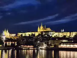 From afar, Prague Castle offers different charms by day and night. During the day, the orange rooftops glisten in the sunlight, creating a warm cityscape, while at night, golden lights envelop the castle, completing a magical night view. Even from the same spot, each moment brings a unique sense of wonder. 🌇🏞️✨