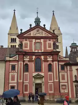 St. George's Basilica stands out with its elegant Romanesque architecture. Its red roof and balanced structure exude a calm beauty within the castle complex, offering a tranquil charm distinct from St. Vitus Cathedral. 🏛️✨