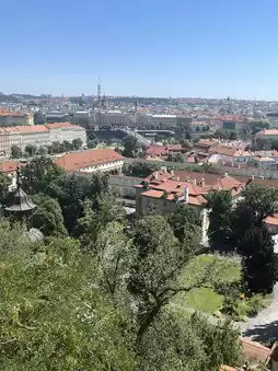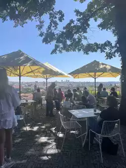 It's one of the restaurants high up on Prague Castle. I stumbled upon it and was blown away by the amazing view. 🤍 Sitting there, enjoying a drink, and gazing out at the Prague skyline is truly healing!