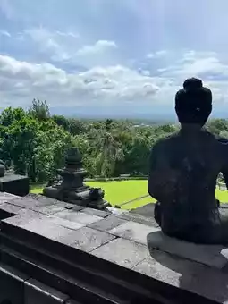 - Overlooking Yogyakarta and Borobudur, showcasing magnificent volcanic scenery where the grandeur of nature contrasts sharply with human smallness.