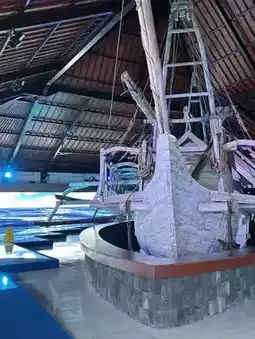 Displays the replica ship "Samudra Raksa," built based on the ship reliefs depicted on Borobudur Temple