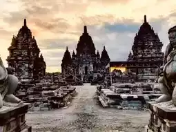 Located northeast of Yogyakarta, Indonesia, Prambanan is Southeast Asia's most magnificent Hindu temple complex. Built in the 9th century, it is a UNESCO World Heritage Site. Primarily dedicated to the three main Hindu deities—Brahma (Creation), Vishnu (Protection), and Shiva (Destruction), the 47-meter-tall Shiva Temple is the most impressive. The temple complex boasts intricate carvings, with its walls covered in stories from the Ramayana, showcasing the art and beliefs of ancient Javanese royalty. At sunset, the temples' silhouettes against the tangerine sky create a solemn and romantic atmosphere. At night, visitors can enjoy a Ramayana dance performance set against the temples, a perfect blend of history and art, making it a must-see destination in Yogyakarta.
