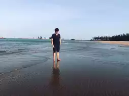 • The beach is about 5–7 km long. The sand is quite wide and the water is shallow. It is suitable for walking or families with very young children.
