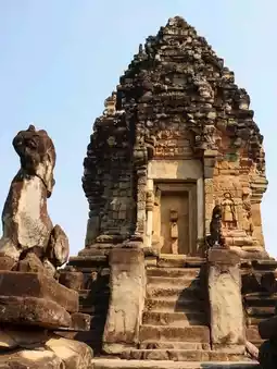 Unlike the crowded temples of Angkor, Bakong feels calm and spaciousperfect for a slow walk among the stones. You’ll see ancient carvings, weathered towers, and statues of lions and elephants guarding the steps. It’s simple, quiet, and deeply meaningful a place where the roots of Khmer architecture first took shape.
