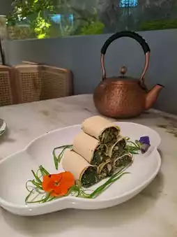 The bean curd skin has a great texture, and the vegetable filling is crisp.