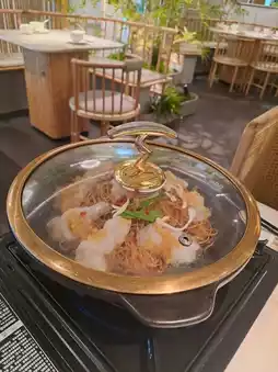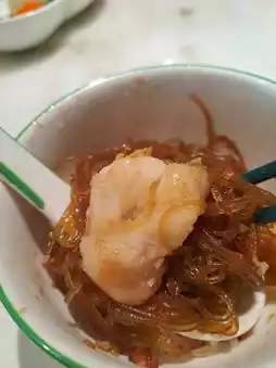 Heated directly in the pot on the stove, the shrimp balls are large, fresh, and crisp. The silky vermicelli absorbs the savory and slightly sweet sauce, making it delicious.