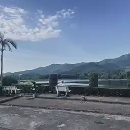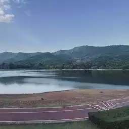 📸 Capture the natural feel of the reservoir with the mountains behind. The evening light is especially beautiful.