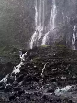 To reach the base, you hike down a steep jungle trail, gripping ropes and makeshift steps — which only adds to the adventure! 🧗♀️🌴 At the bottom, everything is covered in mist and rainbows, and the scene feels like something straight out of a movie 📸🌈