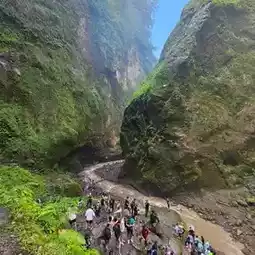For a more immersive experience, it is recommended to hike down to the base of the waterfall. Although the trail can be quite challenging (slippery and requiring caution), the effort is well worth it. Standing amidst the cascading waters and feeling the refreshing mist is truly a special and invigorating experience.