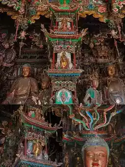 3. Little Western Heaven: This "hanging temple" atop a mountain dazzles with red walls and yellow tiles against greenery. The summit offers panoramic county views. Its colorful sculptures and remarkably preserved murals depict lifelike Buddhist figures in dynamic poses. Arrive at 7:30am for soft light and solitude.