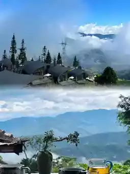 📍 Jingmai Mountain: Millennium-old tea gardens above sea of clouds, visit Wengji Ancient Village's traditional Brown ethnic stilt houses (Huimin Town, Lancang County)