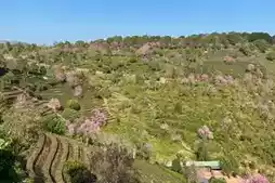 Location: From Jingmai Dazhai towards Wengji Ancient Village, passing through the tea mountain area, you can see the entire tea mountain and the roadside full of various romantic small cherry blossoms.