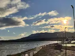 There's a nice walking trail along the coast from the city center to Natales Harbor. Across from the harbor are sweeping snow-capped mountains, creating a breathtaking view on clear days.