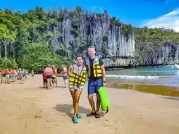 We arrived at Sabang Beach before heading to the famous Underground River, and the view instantly caught my heart. The beach was absolutely breathtaking, calm turquoise waters, soft golden sand, and towering limestone cliffs framing the horizon. It was one of those places where you just have to pause and take it all in. Naturally, we took a few photos before the tour because the scenery was just too beautiful to skip. The nature here was totally giving, every angle looked like a postcard. After taking some shots, we made our way to the Underground River. The short walk through the forest was peaceful, shaded by tall trees and the sound of birds echoing around us. Before we entered the trail, our guide reminded us to be careful with our belongings because monkeys sometimes snatch food or shiny items. Thankfully, no incidents happened during our visit just the thrill of being surrounded by pure, untouched nature.