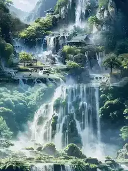 Luoji Ninety-Nine Mile Hot Spring Waterfall is located in the magnificent Luoji Mountains. Here, the waterfall cascades down steep cliffs, forming a continuous curtain of water, especially when illuminated by sunlight, like a moving painting. Late spring and early summer, when the water volume is abundant, is the best season to view the waterfall.