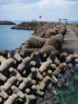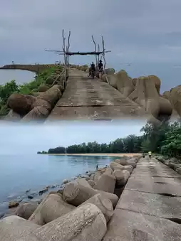 Finally we arrived in Marang County, where we deliberately turned into narrow paths and came to the Marang Pier and fishing village, which is said to be very beautiful. This is also one of the piers for taking a boat to Pulau Kapas. In addition to the seawall built with odd-shaped wave-breaking bricks, it is quite unique!