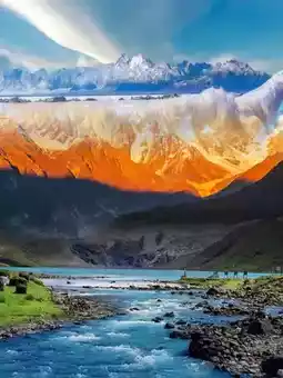 📍 Naimona'nyi Peak: Facing Mount Kailash, the snow-capped mountain and the sacred lake complement each other, creating a stunning view.