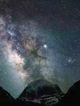 📍 By night, the Milky Way crowns Kailash, turning the sacred peak into a gateway to the stars.
