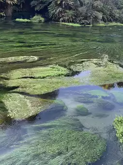 New Zealand's Blue Spring is located in a small town between Hamilton and Rotorua. On a sunny day at noon, the sunlight directly hits the stream, making it sparkle beautifully. This trail is suitable for people of all ages, as it takes only about 30 minutes round trip to see the spring. There are two entrances: one is easy and the other requires a 3-hour hike, making it perfect for both those who enjoy challenges and those who prefer a leisurely walk.