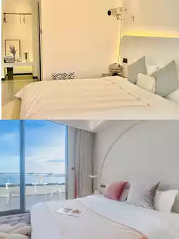 It is in the most prosperous area of Meizhou Island, which is the town center. It is very convenient to go to various attractions. There is a farmer's market next to it. There are Luckin Coffee, Heytea, Mixue, and Internet celebrity check-in restaurants downstairs. Foodies must come. You can see the sea and half of Meizhou Island from the window, and there is also a huge terrace.