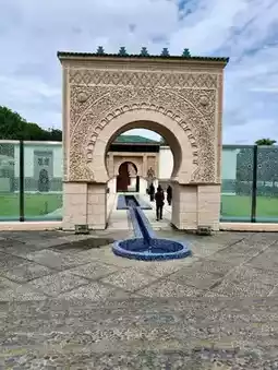 - The pavilion features authentic Moroccan craftsmanship with detailed zellij (mosaic tilework), carved plaster, and ornate wooden elements.
