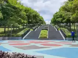 Tangga Putrajaya (Putrajaya Steps) is a striking landmark in Putrajaya, notable for its unique geometric patterns and tiered design. Lush trees line both sides of the steps, offering visitors a cool and pleasant environment. From the top, one can overlook Putrajaya's city skyline, including iconic buildings, making it an ideal spot for photography and enjoying scenic views. Whether for a leisurely stroll or a workout, this is a must-visit attraction in Putrajaya.