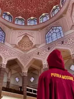 The Putra Mosque, also known as Masjid Putra, is one of Malaysia’s most beautiful mosques, famous for its unique rose-pink granite exterior. Located by the lake in Putrajaya, this mosque has become a top destination for visitors looking for peaceful scenery and stunning architecture.