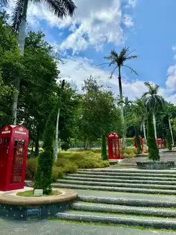 Adding to its charm are the Old England–style red telephone booths placed as decorative pieces, giving the garden a quirky yet vintage vibe. These eye-catching booths have become popular photo spots, perfect for those who love a touch of nostalgia in their pictures.