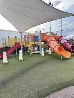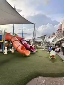 The Putrajaya Playground is a medium-sized playground, not too large, located next to the Pink Mosque. If you're visiting Kuala Lumpur and have a photo opportunity with the Pink Mosque, you can take your kids to this area. There's no charge. The playground is located on the lower level, where you can find a cafe, food stalls, and souvenir shops. You can take the escalator down to relax and unwind. Kids will have fun here. There's a slide that connects to the bottom of a boat, a train, and many other activities for them to let loose and run around until they're sweating. #putrajaya #putramosque