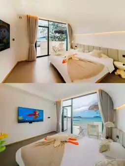As soon as you step out the door, you can go downstairs to the beach, facing the sea, and this place is perfect for taking photos and checking in.