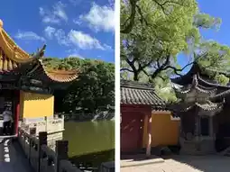 Arriving at Mount Putuo's oldest main monastery near dusk, the sunlight cast a golden glow on the weathered walls of Puji Temple, immersing the entire temple in a rhythm of another time and space. Stepping into this Guanyin sanctuary, the serene and spiritually charged environment felt like entering a sacred misty realm among twilight mountains. White clouds gently encircled the area, light and shadow intertwined, and the mind mirrored the ripples in the Haiyin Pool, expanding inward in quiet circles. It seemed tranquil yet held infinite awareness. Our group of five wandered through various sites such as Xilai Zen Courtyard, Xilin Hall, Imperial Stele Pavilion, Hall of Heavenly Kings, Pumen Hall, and the Great Hall of Perfect Enlightenment. We sensed that this architectural complex was not only a physical manifestation of an ancient monastery but also a long-lost echo of the soul. It felt like a spiritual symbol where Zen aesthetics and architectural beauty merged seamlessly. In this sacred mountain sanctuary, our body, mind, and spirit intertwined with the holy atmosphere. Being here meant truly being present; no concern for worldly matters, no use of phones, no checking messages, no responding to noise—just a moment of silence for oneself, enjoying the tranquil Zen ambiance and the harmony of nature.
