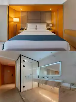 The hotel features a minimalist, stylish design with high-quality bedding for a soft and cozy experience. Some room types come with a scenic bathtub🛁, home theater🎦, and more. All bathrooms are designed with dry-wet separation, complete with toiletries, bathrobes, and slippers, bringing you the warmth and comfort of home😌.