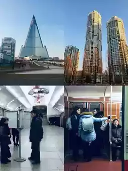 Pyongyang's nightlife is equally captivating. The Ryugyong Hotel towers into the sky, its lights shining brightly, creating a stunning sight in the city's night sky. The surrounding commercial areas are bustling with activity, where people shop and relax, creating a lively atmosphere.