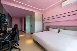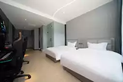 • E-sports King Room: Perfect for solo travelers, offering a private and quiet gaming space. When you're tired, you can relax on the soft king-sized bed.