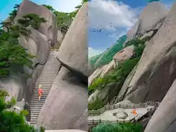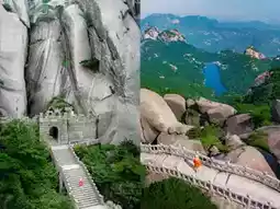 4. Hundred-Step Cloud Ladder: A "brave challenge" within Zongguanzhai. These nearly vertical steps lead directly to the summit, making the climb a thrilling and exhilarating experience. The glimpse back from the summit is a truly rewarding experience.