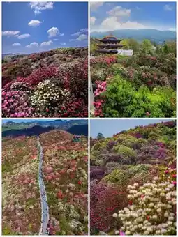 The azaleas in the "Five-Colored Road" in the Pudi Scenic Area are the most colorful and have a more concentrated variety. The "Baihuaping" in Jinpo Scenic Area has a wide variety of rhododendrons, as well as a giant sculpture of the flower god, a theme park for worshiping the flower god, and a flower god temple. It is the venue for the annual Yi Flower Festival and Miao Tiaopo Festival.