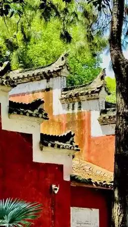 Upon arriving at Puyang Taoist Temple in Qichun, I was struck by its grandeur. This temple, originally built during the Song Dynasty, is located at Fuhu Mountain in Hedawan Village, Caohe Town. Its medical Taoist culture traces back to the renowned physician Sun Simiao from the Sui and Tang dynasties, boasting a history of over 1,400 years. Stepping inside, the striking red walls, intricate glazed decorations, and lush greenery create an atmosphere reminiscent of a primeval forest, while the profound Taoist cultural heritage makes the visit truly worthwhile.