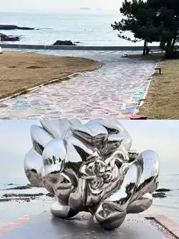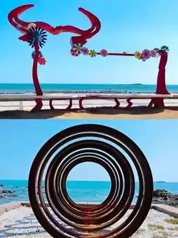 The entire sculpture park is backed by Fushan and faces the sea. To the left, there is Shilaoren Bathing Beach and Qingdao Planning Exhibition Hall. To the right, there are Xiaomai Island, Sea Love Park, and Polar Ocean World. 🦋