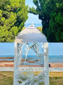 Qingdao Sculpture Park has a sculpture museum, outdoor sculptures, pine trees leading to the sea, lawns, and reefs. Walking along the coast, you can see beautiful scenery everywhere, which is very suitable for Citywalk and Cityride. 🚶